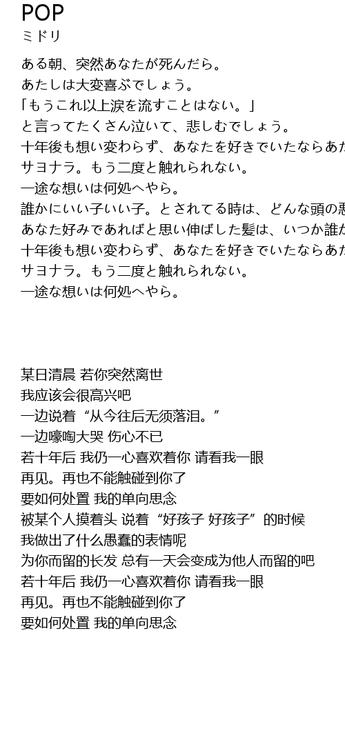 | [00:33.17] | ある朝、突然あなたが死んだら。 |