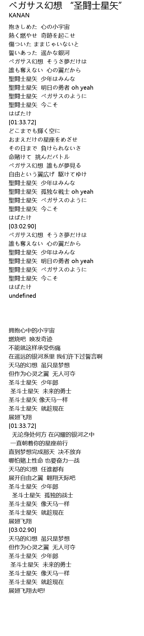 | Song | ペガサス幻想 “圣闘士星矢” |
