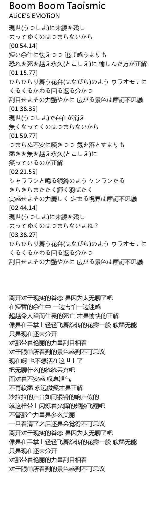 | [03:28.27] | 現世(うつしよ)に未練を残し 去ってゆくのはつまらないよね? |