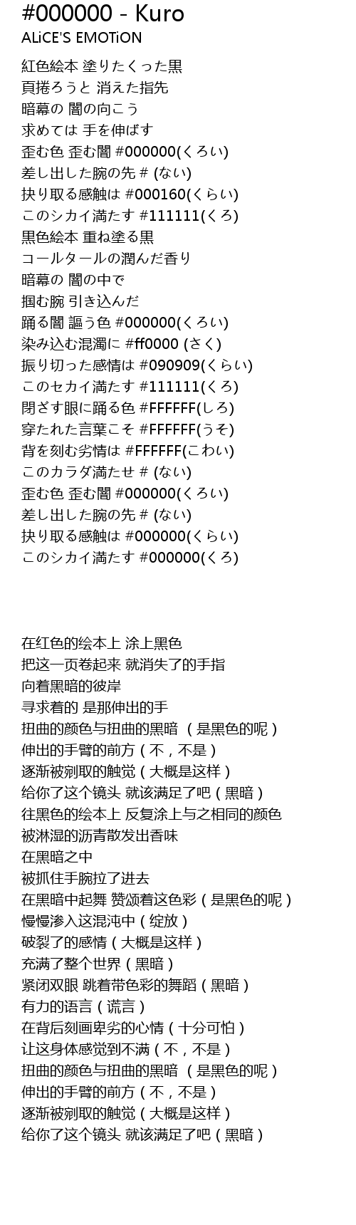 | [01:19.24] | 歪む色 歪む闇 #000000(くろい) |
