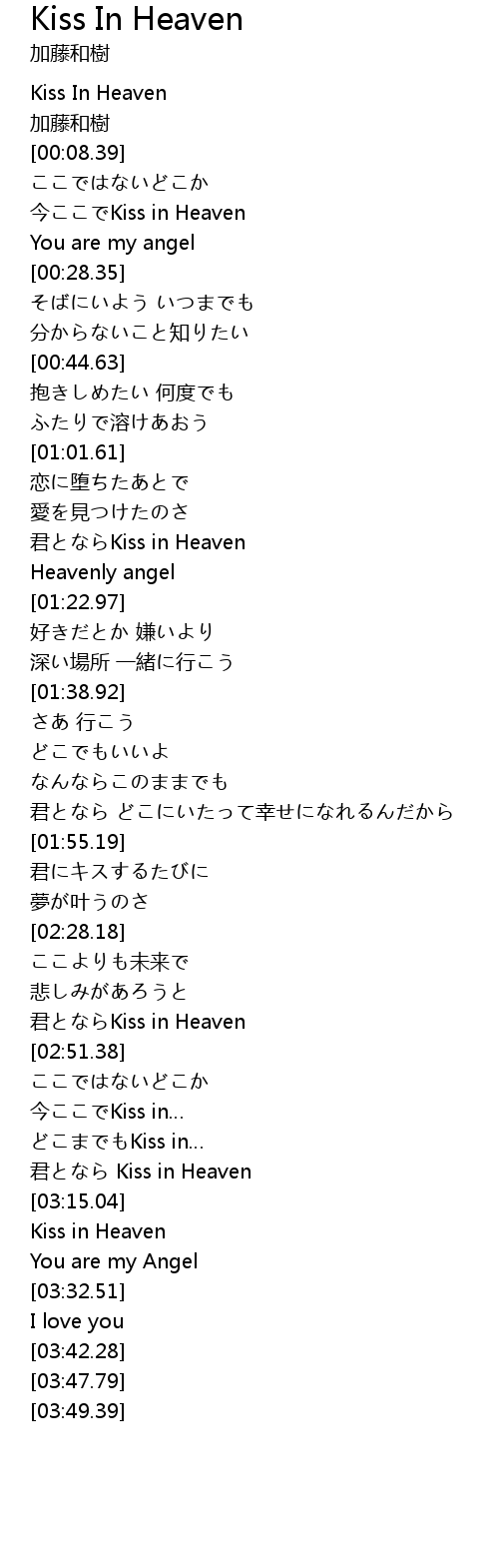 | [03:23.79] | Kiss in Heaven |