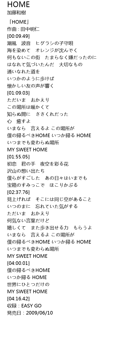 | [03:47.20] | 僕の帰るべきHOME いつか帰る HOME |