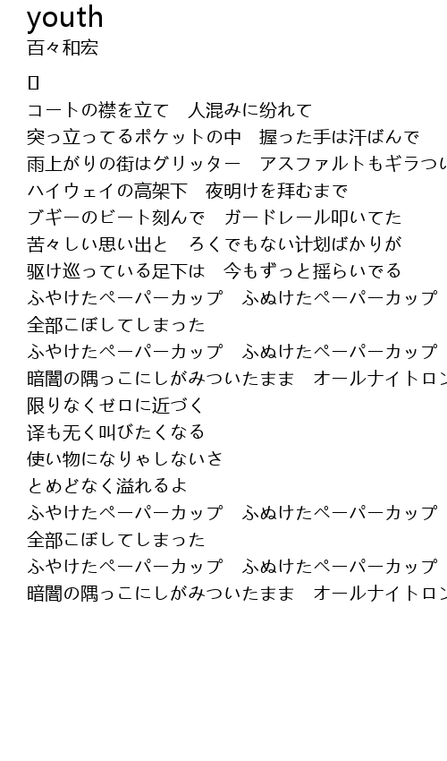 | 突っ立ってるポケットの中 握った手は汗ばんで | |