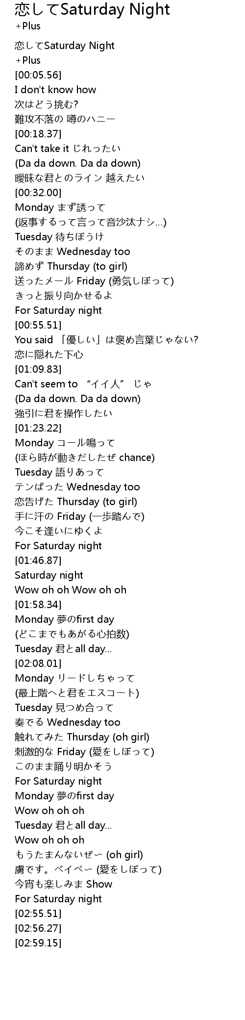 | [01:38.44] | 手に汗の Friday (一歩踏んで) |
