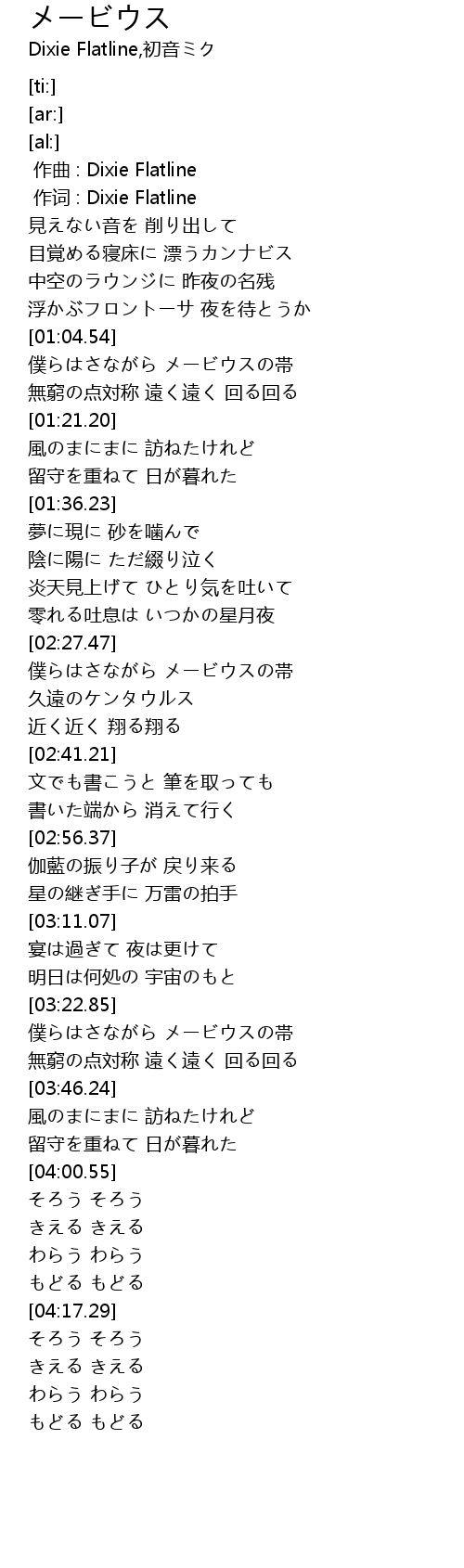 | [01:06.70] | 僕らはさながら メービウスの帯 |