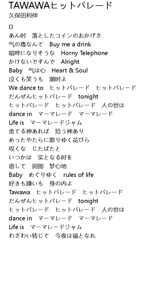 | Song | TAWAWAヒットパレード |