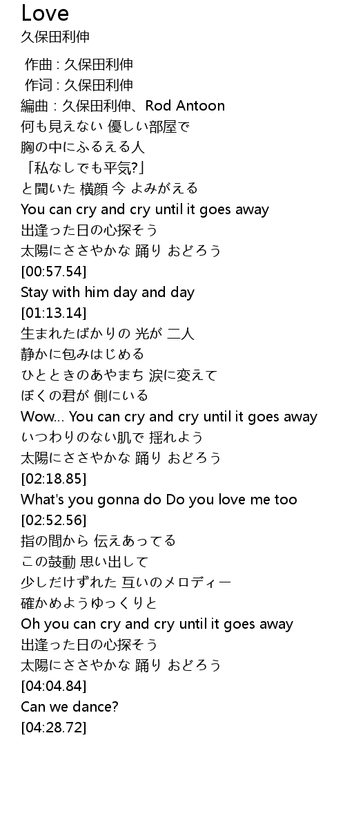 | [00:31.10] | You can cry and cry until it goes away |