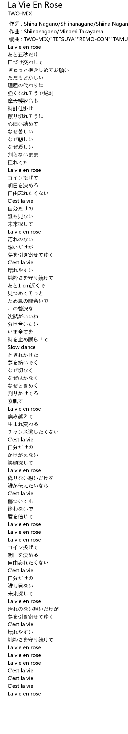 | [00:02.000] | biān qǔ : TWOMIX" TETSUYA"" REMOCON"" TAMURA" TETSUYA" REMOCON" TAMURA |
