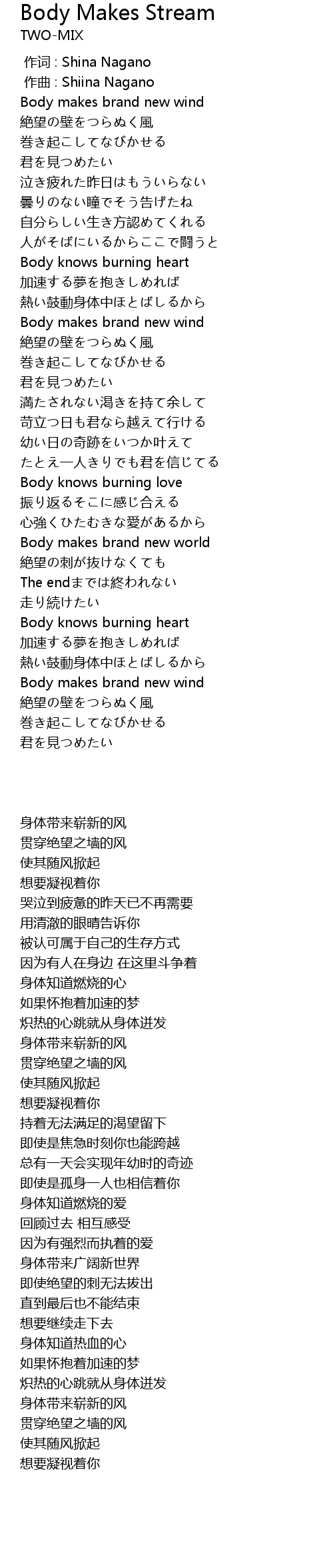 | [00:00.000] | zuò cí : Shina Nagano |