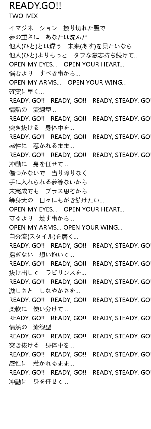 | [02:57] | READY, GO!! READY, GO!! READY, STEADY, GO!! |