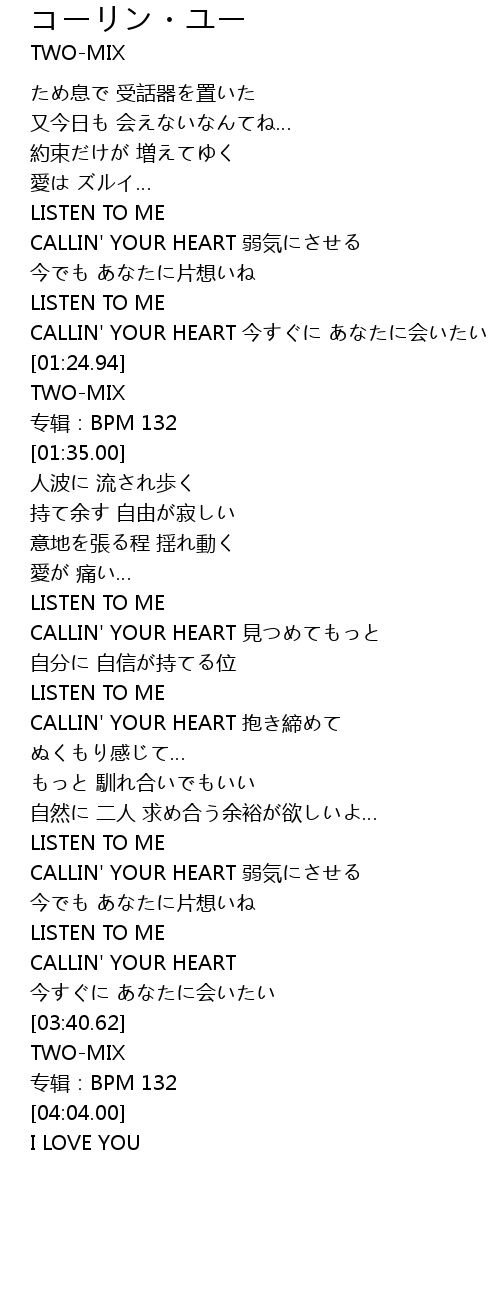 | [02:13.62] | CALLIN' YOUR HEART jian |