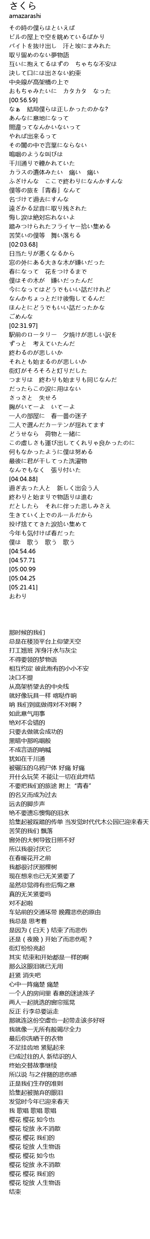 | [05:17.30][05:04.25] | さくら さく 物語 |