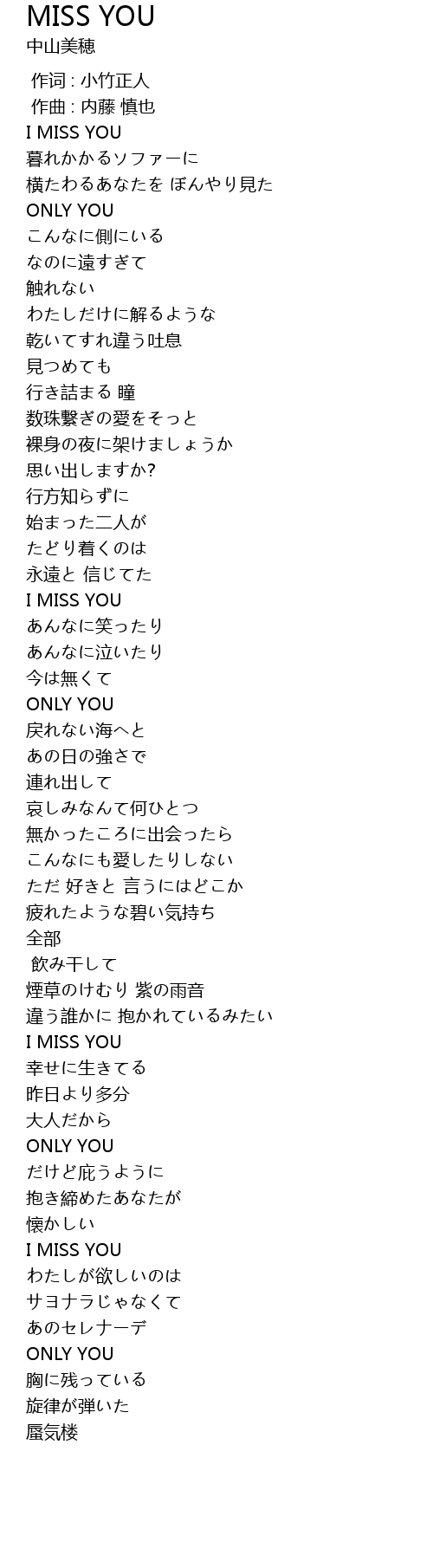 | [02:48.32] | I MISS YOU |