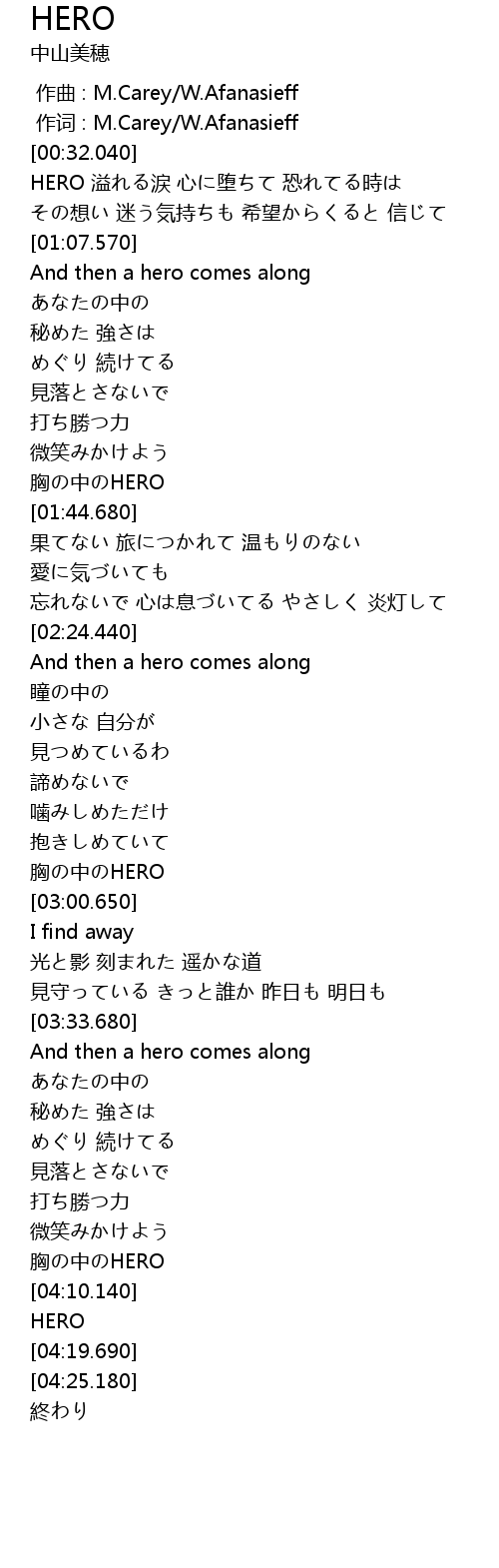 | [04:03.260] | 胸の中のHERO |