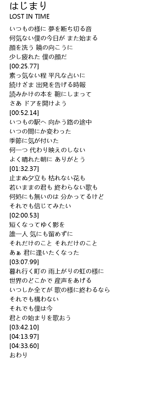 | [00:34.68] | 続けざま 出発を告げる時報 |