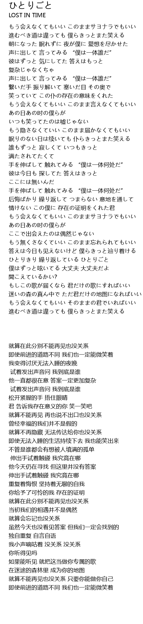 | [03:25.00] | ひとりきり 繰り返している ひとりごと |