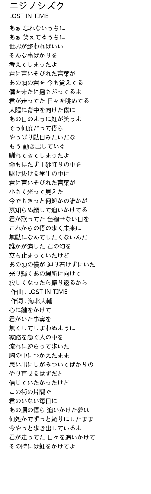 | [00:01.00] | 作词 : 海北大輔 |