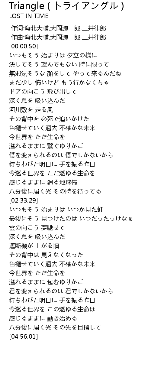 | [00:00.050] | 作曲:海北大輔,大岡源一郎,三井律郎 |