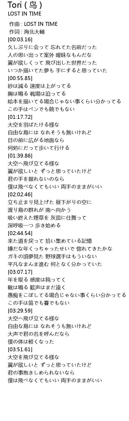 | [03:35.10] | 自由な鳥には なれそうも無いけれど |