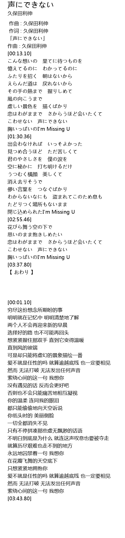 | [03:30.46] | 胸いっぱいのI'm Missing U |