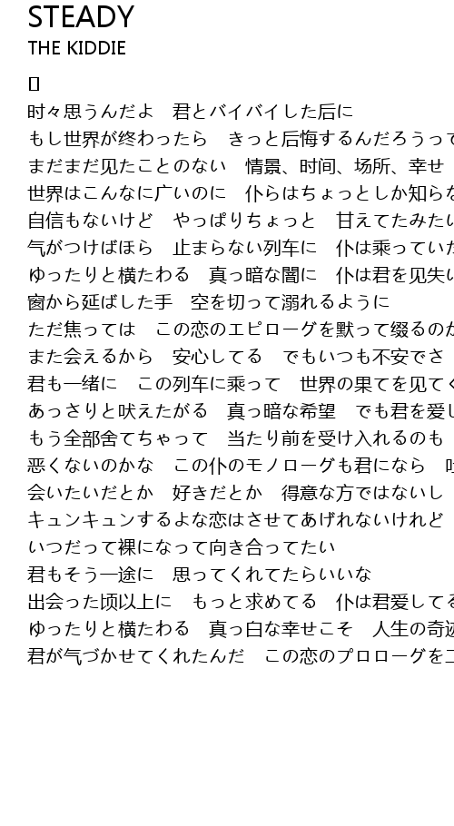 | 君も一绪に この列车に乘って 世界の果てを见てくれないかな | |