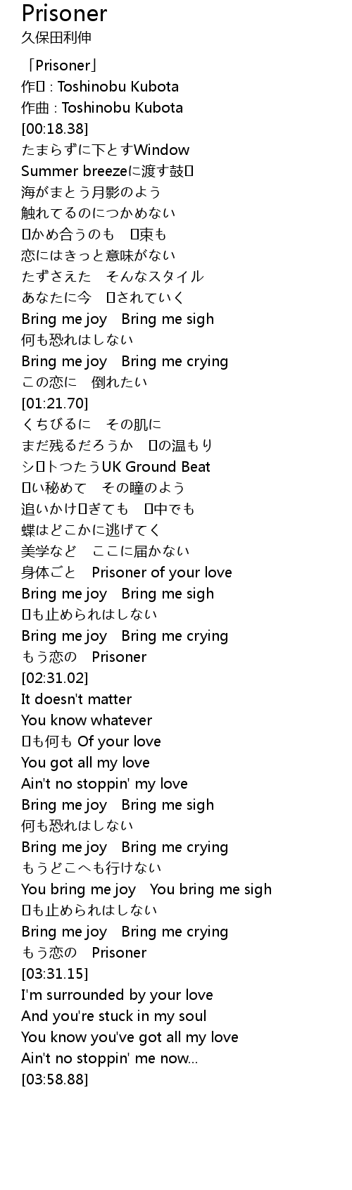 | [02:04.77] | 身体ごと Prisoner of your love |