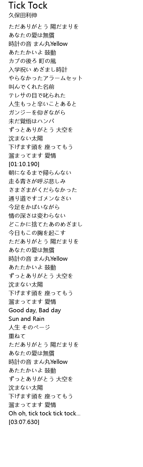 | [01:48.620] | 時計の音 まん丸Yellow |