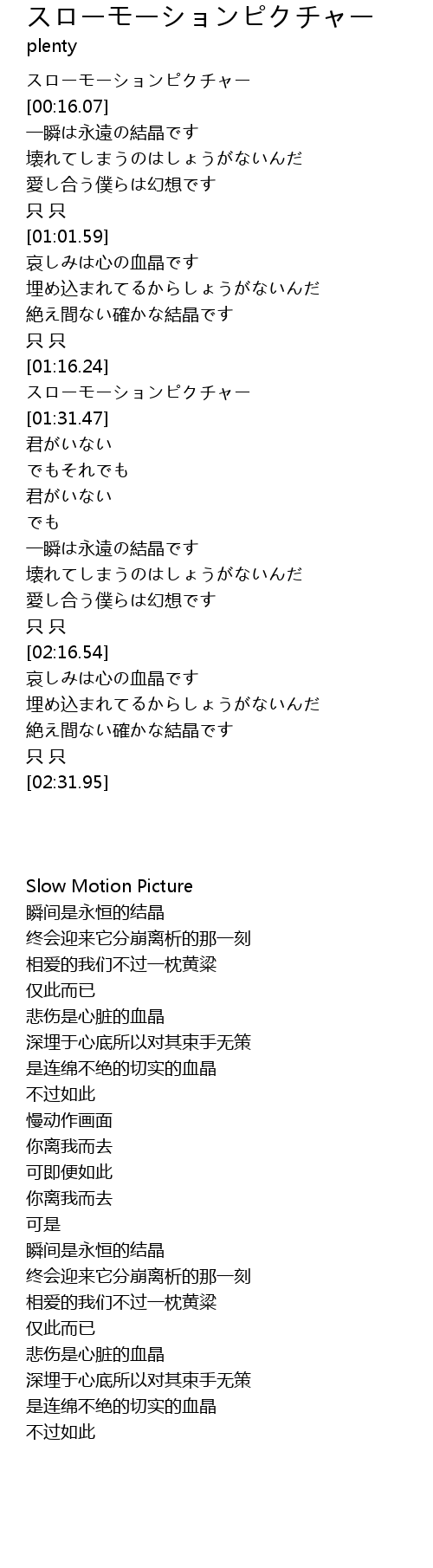 | [01:16.49] | スローモーションピクチャー |