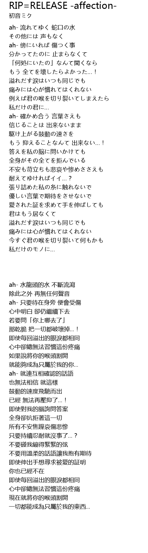 RIP=RELEASE -affection- Lyrics