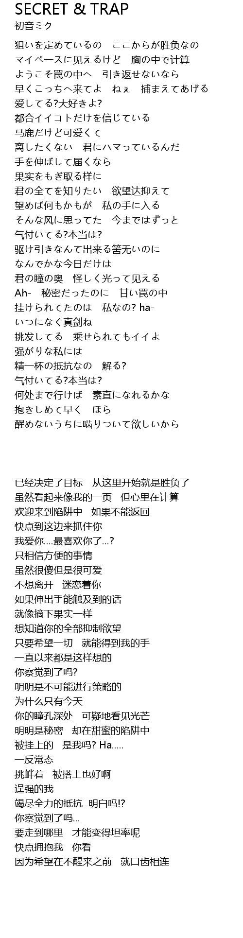 | [02:07.88] | Ah- 秘密だったのに 甘い罠の中 |