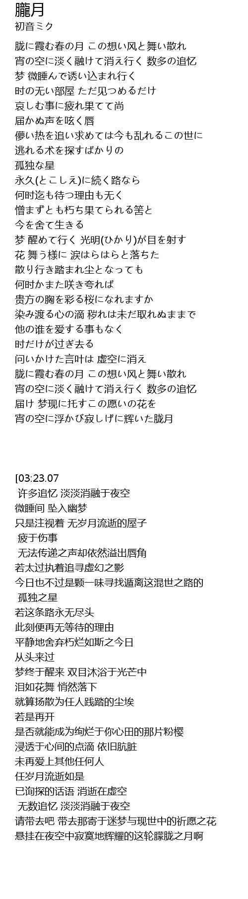 | [03:51.540] | 宵の空に浮かび寂しげに辉いた胧月 |