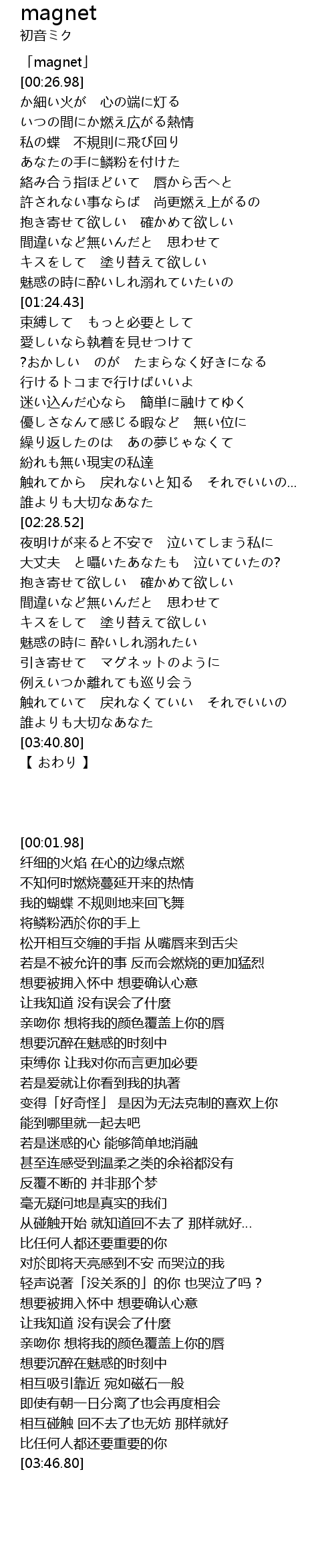 | [00:01.98] | 「magnet」 |