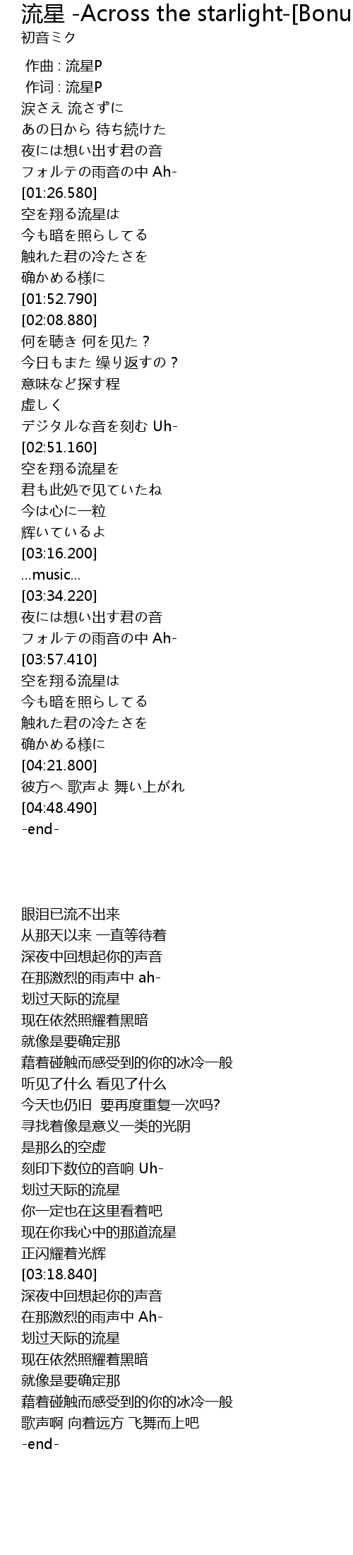 | Song | 流星 -Across the starlight-[Bonus track] |