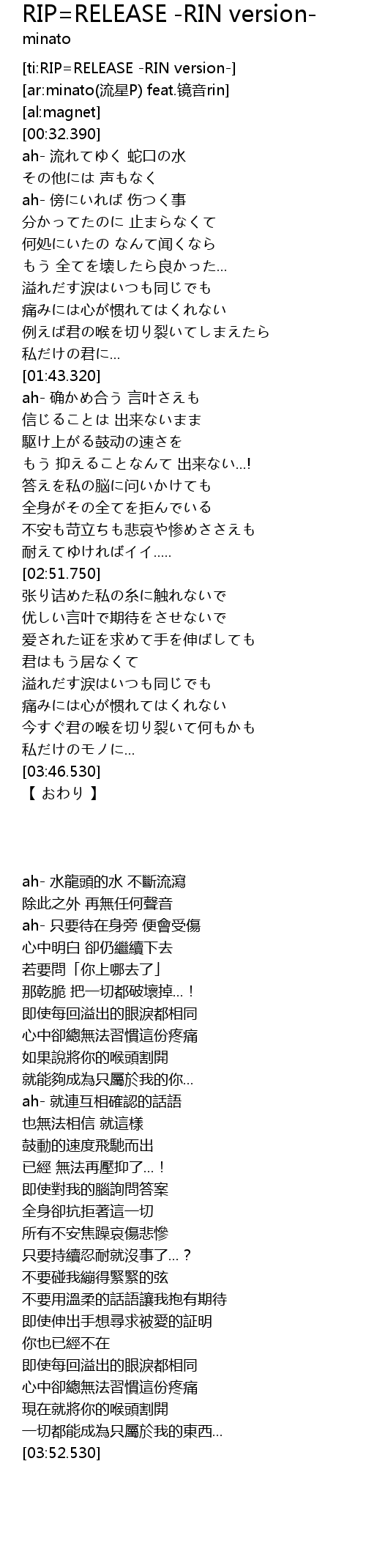 | [ti:RIP=RELEASE -RIN version-] | |