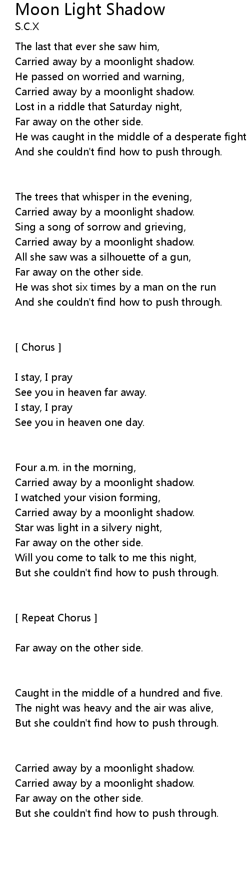 Carried away by a moonlight shadow. |