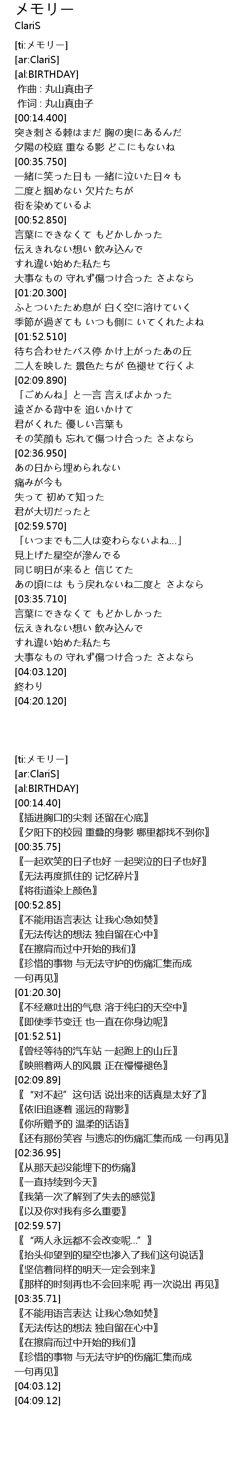 | [00:01.00] | 作词 : 丸山真由子 |