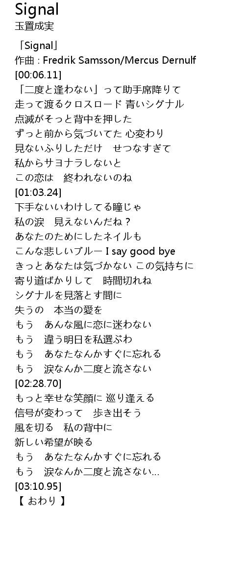 | [00:01.11] | 「Signal」 |