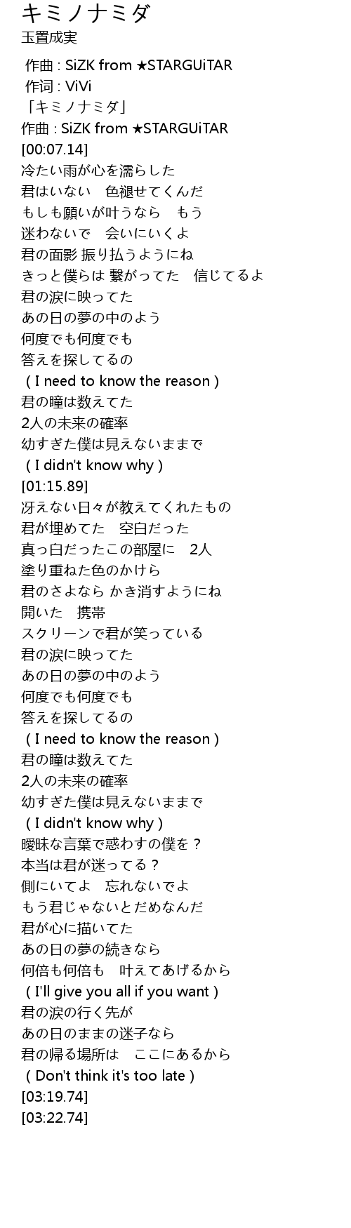 | [00:03.14] | 作曲∶SiZK from ★STARGUiTAR |