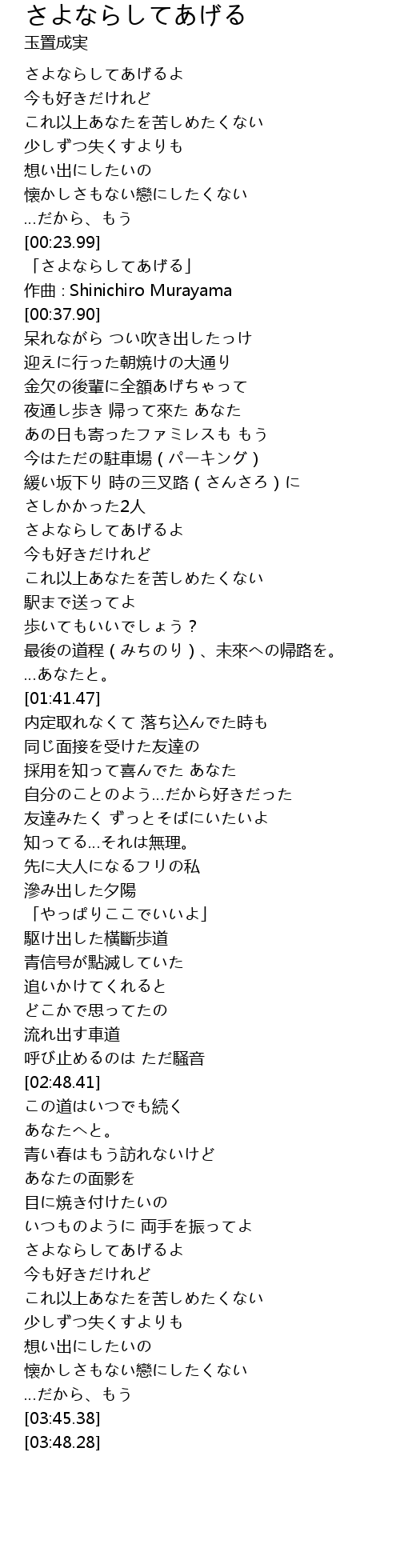 | [03:22.76] | さよならしてあげるよ |