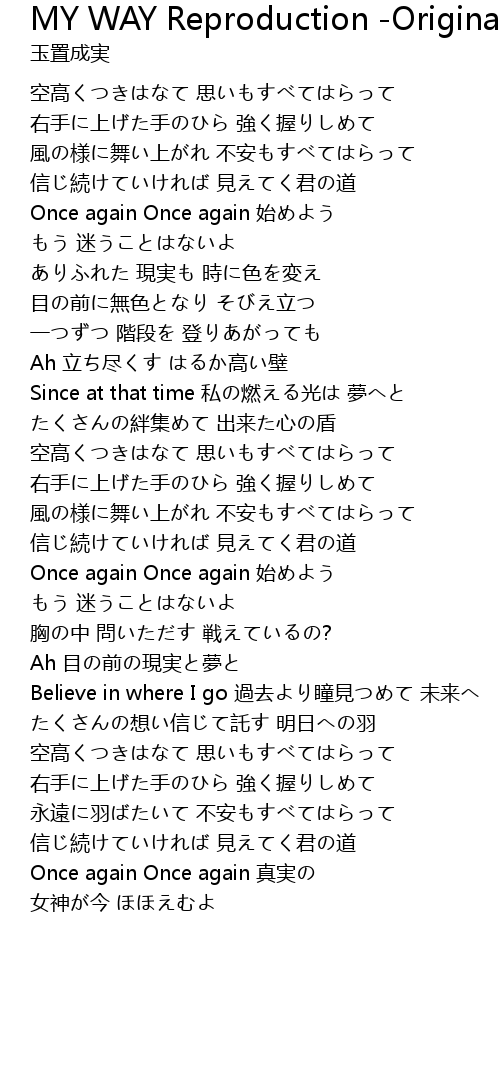 | Believe in where I go 過去より瞳見つめて 未来へ | |