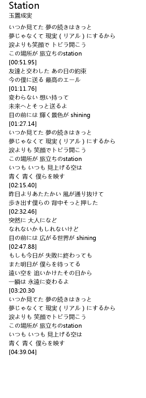 | [04:14.68] | chǎng suǒ lǚ lì station |