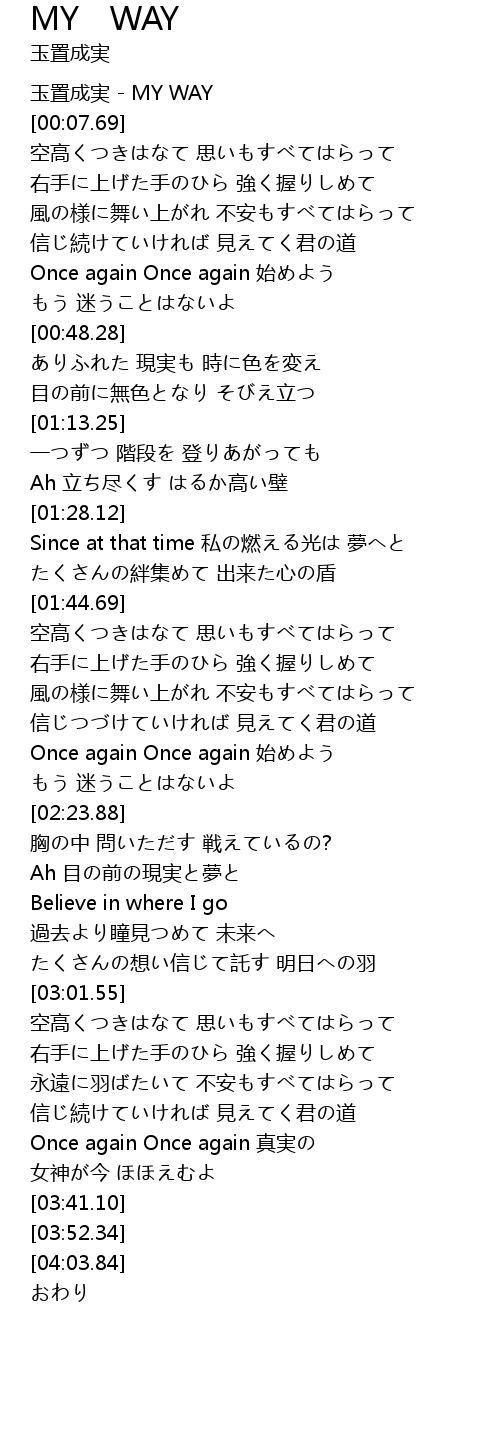 | [00:00.00] | 玉置成実 - MY WAY |