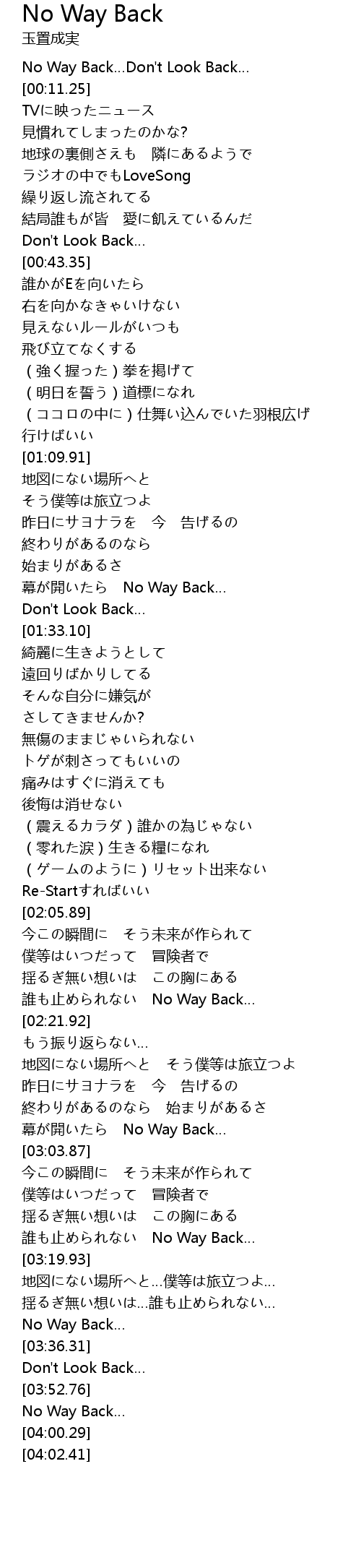 | [03:58.53] | No Way Back |