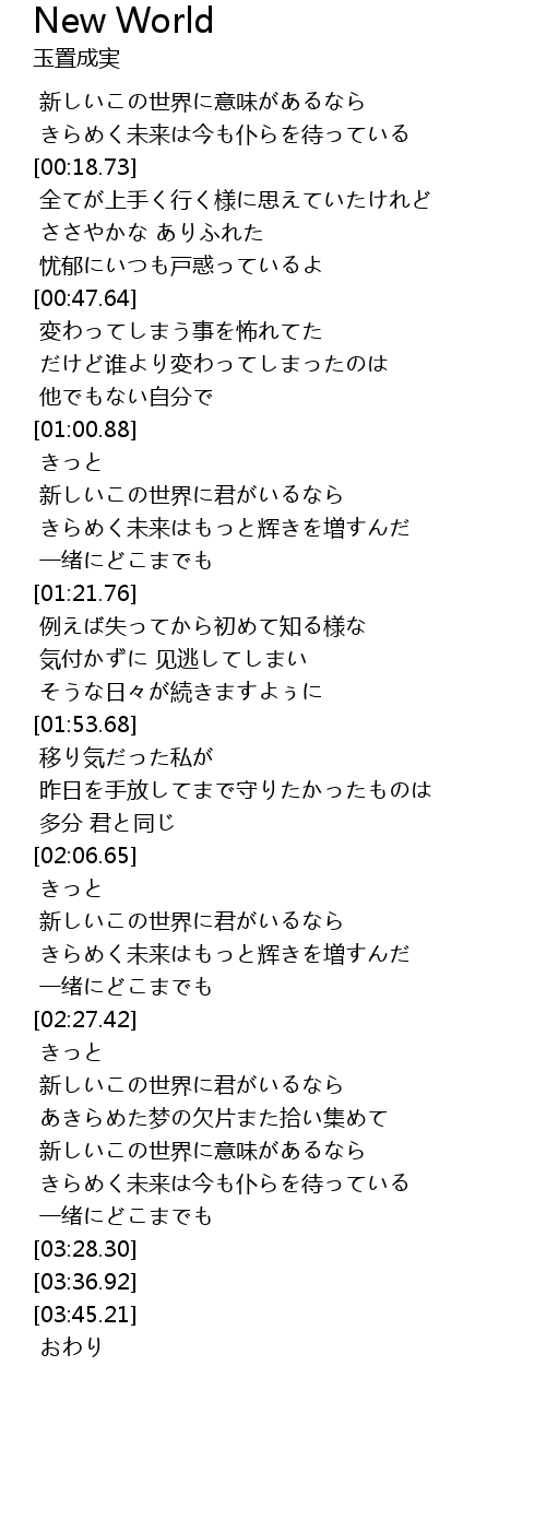| [00:04.05] | 新しいこの世界に意味があるなら |