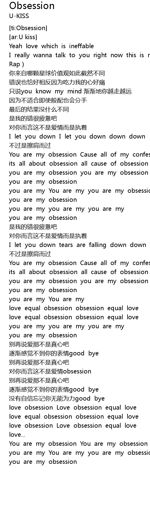 | [00:50.82] | You are my obsession Cause all of my confession |