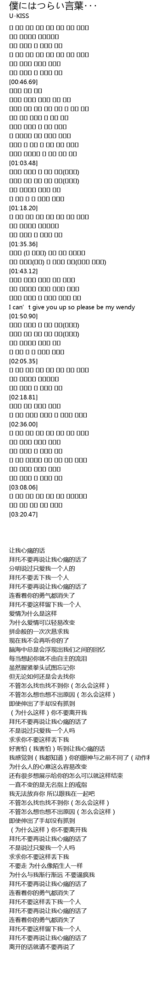 | [01:49.10] | I can' t give you up so please be my wendy |