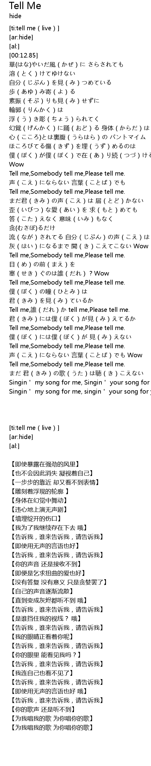 | [03:51.91] | Tell me,Somebody tell me,Please tell me. |