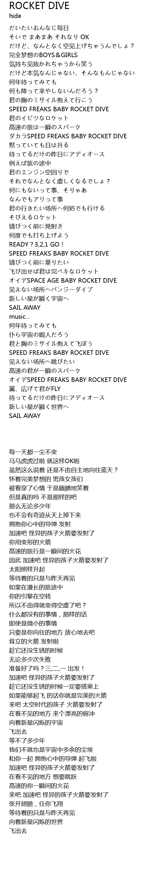 | [02:01.17] | オイデSPACE AGE BABY ROCKET DIVE |