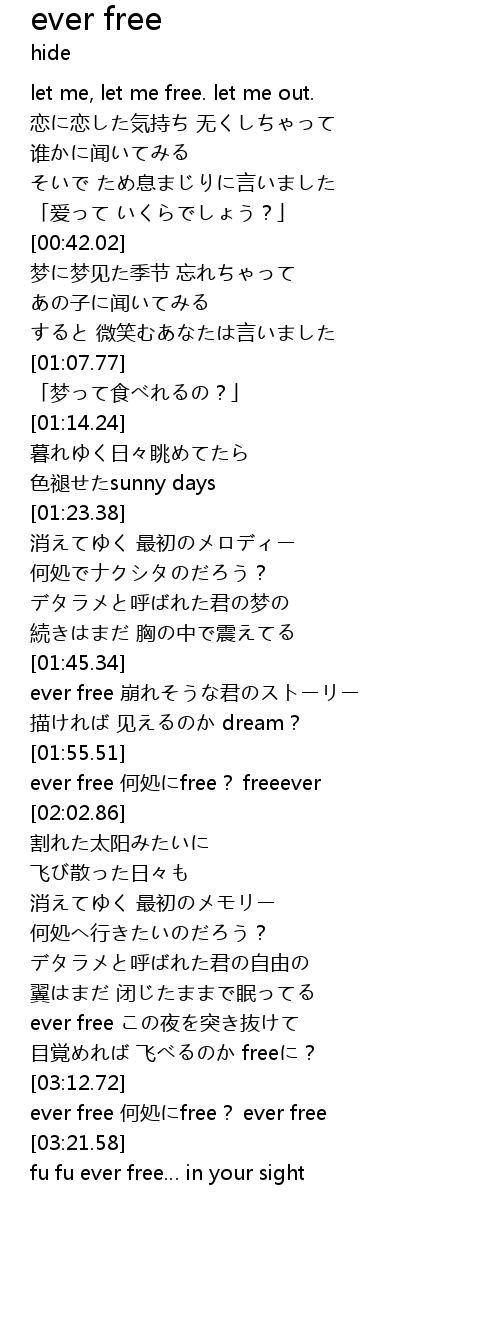 | [03:13.78] | ever free hé chǔ free? ever free |