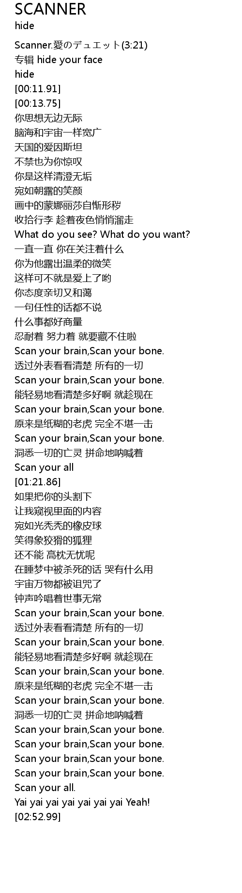 | [02:42.91] | Scan your brain,Scan your bone. |